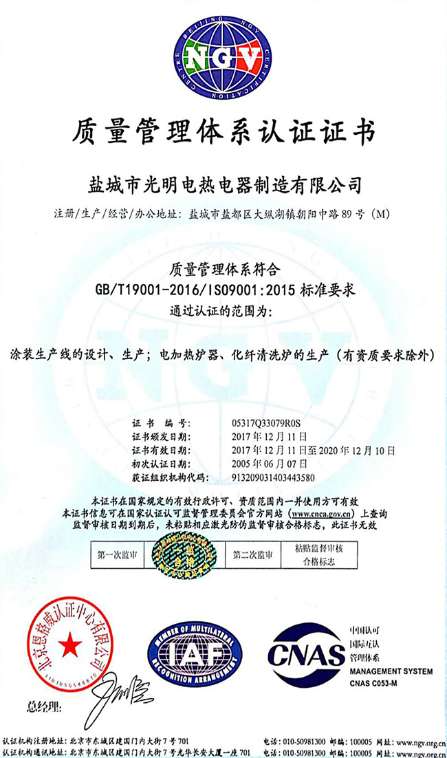 鹽城市光明電熱電器制造有限公司是集科研、設計、制造、安裝調試與咨詢服務為一體的實業制造公司。 公司座落在美麗的黃海之濱-江蘇鹽城,西臨風景優(yōu)美的大縱湖旅游渡假區,環(huán)境優(yōu)美,地理位置方便,以及悠久的歷史文化底蘊,帶給了光明人無限創(chuàng)意和追求。 公司目前主要生產各種電加熱器系列、轉動車、升降臺系列、涂裝生產線等,產品適用于汽車、化纖、紡織、冶金、石油、化工、電子、海洋工程、皮革機械、塑料機械、電纜機械、食品機械、橡膠機械、家用電器等行業。公司以其先進的技術、優(yōu)質的產品、合理的價格,使產品銷售國內外,贏得了眾多客戶的贊許,并與一百多個國內外企業一直保持長期友好的合作關系。我公司可根據客戶使用與現場安裝的需要,設計、制造特殊規(guī)格的上述設備。展望未來,光明人將會以更飽滿的熱情、奮發(fā)開拓、努力進取,因為我們深知光明的今天比昨天好,光明的明天會比今天更美好!